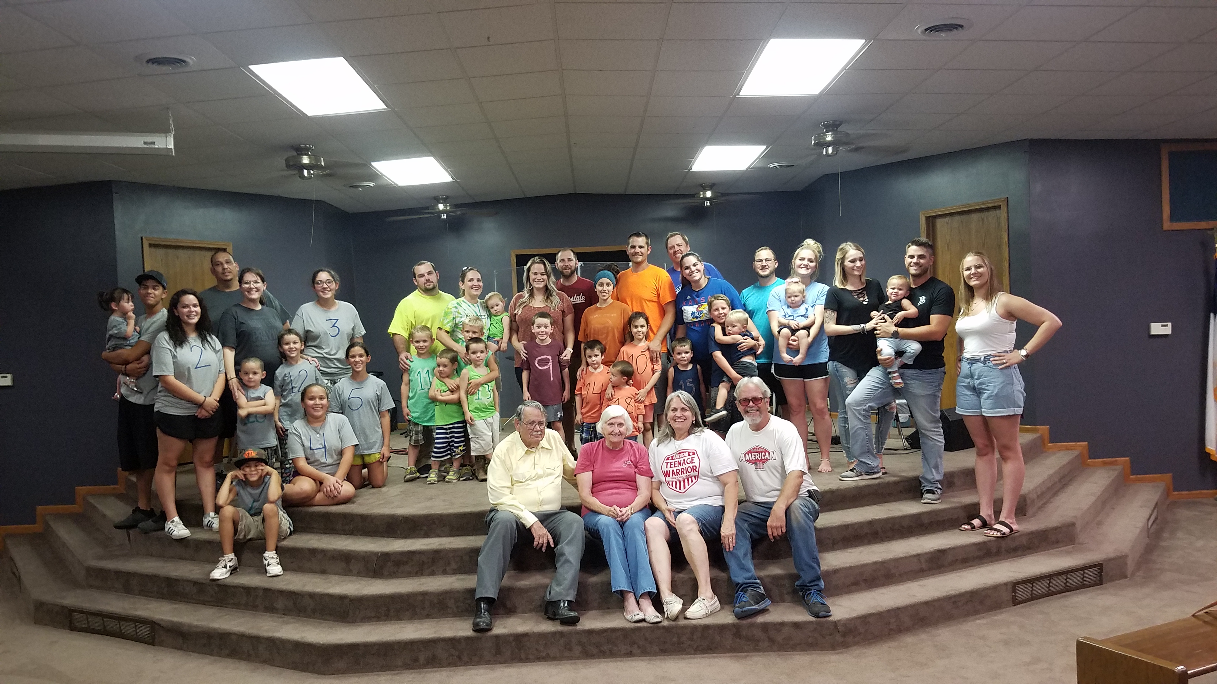 The whole crew of 40 plus Grandma and Grandpa(Jeanette's parents).Three babies on the way as well. Such a blessing!This page is about...Our big loud family. 8 children, 6 with spouses, 28 grandchildren and always counting, and one wonderful husband of 42 years.